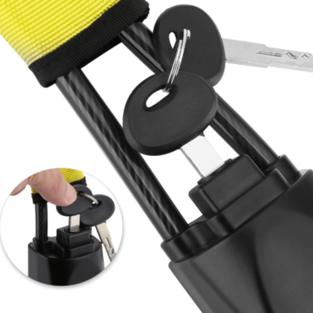 El cinturón bloqueador y 2 llaves de seguridad exclusivas.