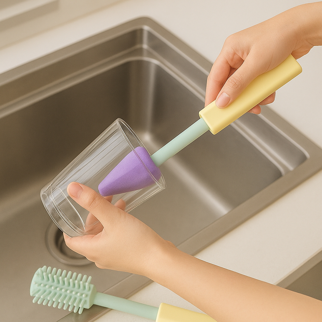 • 🟣 Punta cónica de esponja suave: perfecta para vasos, tazas y termos.