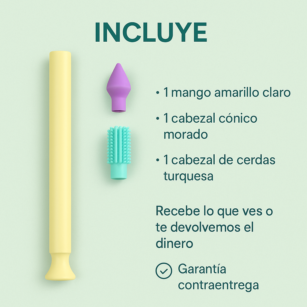 Incluye:1 mango retráctil + 2 cabezales intercambiables