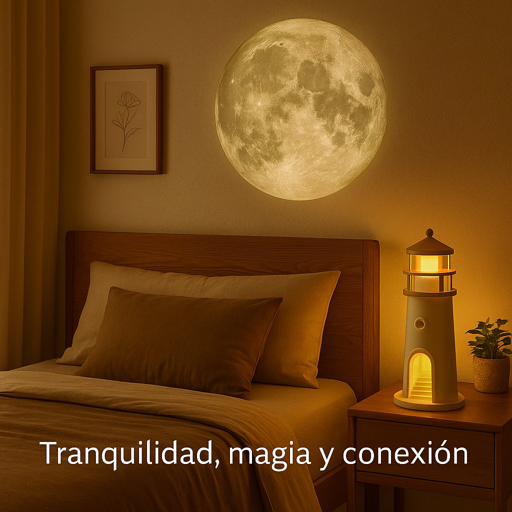 La proyección es tan real que parece que la luna estuviera dentro de mi habitación. La luz es suave, cálida y me ayuda muchísimo a relajarme antes de dormir. Además, el diseño en forma de faro es precioso y combina con todo.
