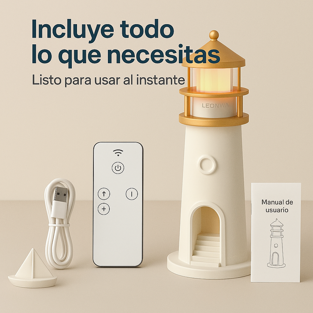🏠 Su elegante diseño en forma de faro emite una luz cálida y envolvente que aporta calma, estética y bienestar visual.