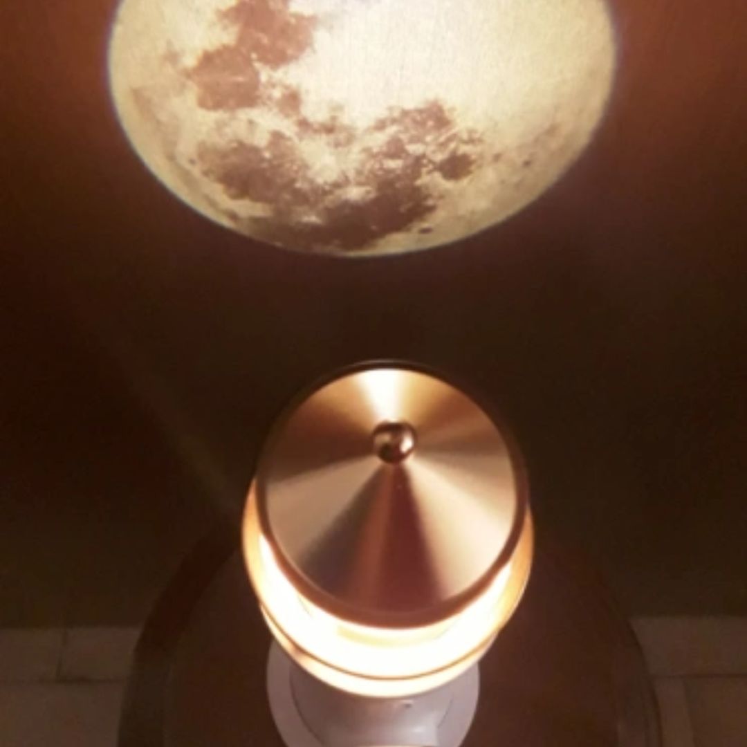 Transforma tu habitación en un espacio mágico con esta lámpara que proyecta una luna realista en tu pared o techo.