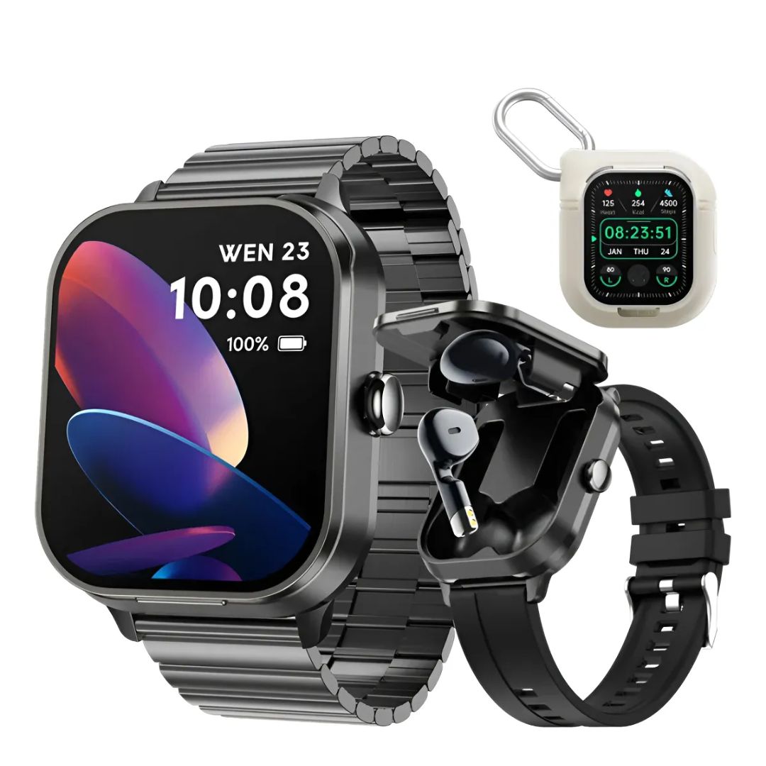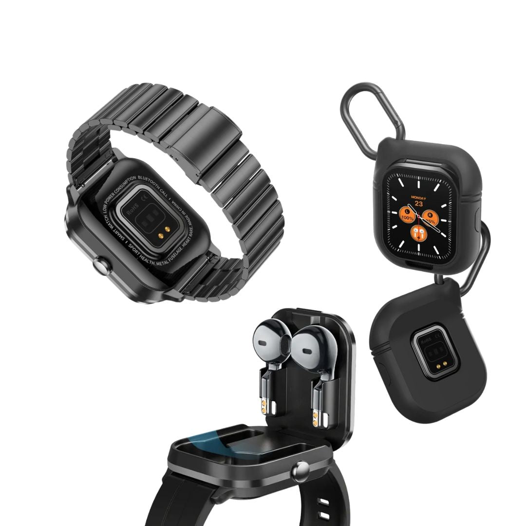 El reloj y los auriculares se cargan mediante un sistema de carga magnética, que facilita el proceso y asegura una conexión segura y rápida.